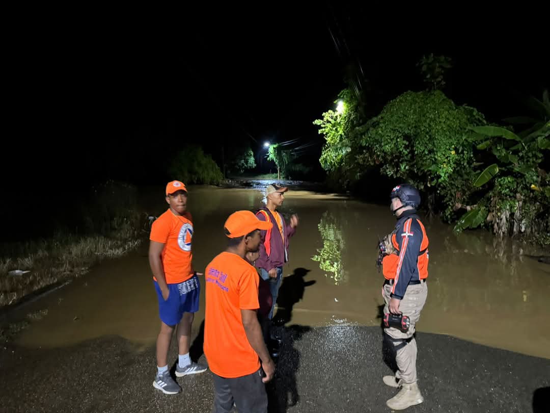 Miembros de la Defensa Civil Regional Nordeste encabezaron las labores de rastreo, desplegándose por la zona en un operativo que se extendió durante horas de la noche.