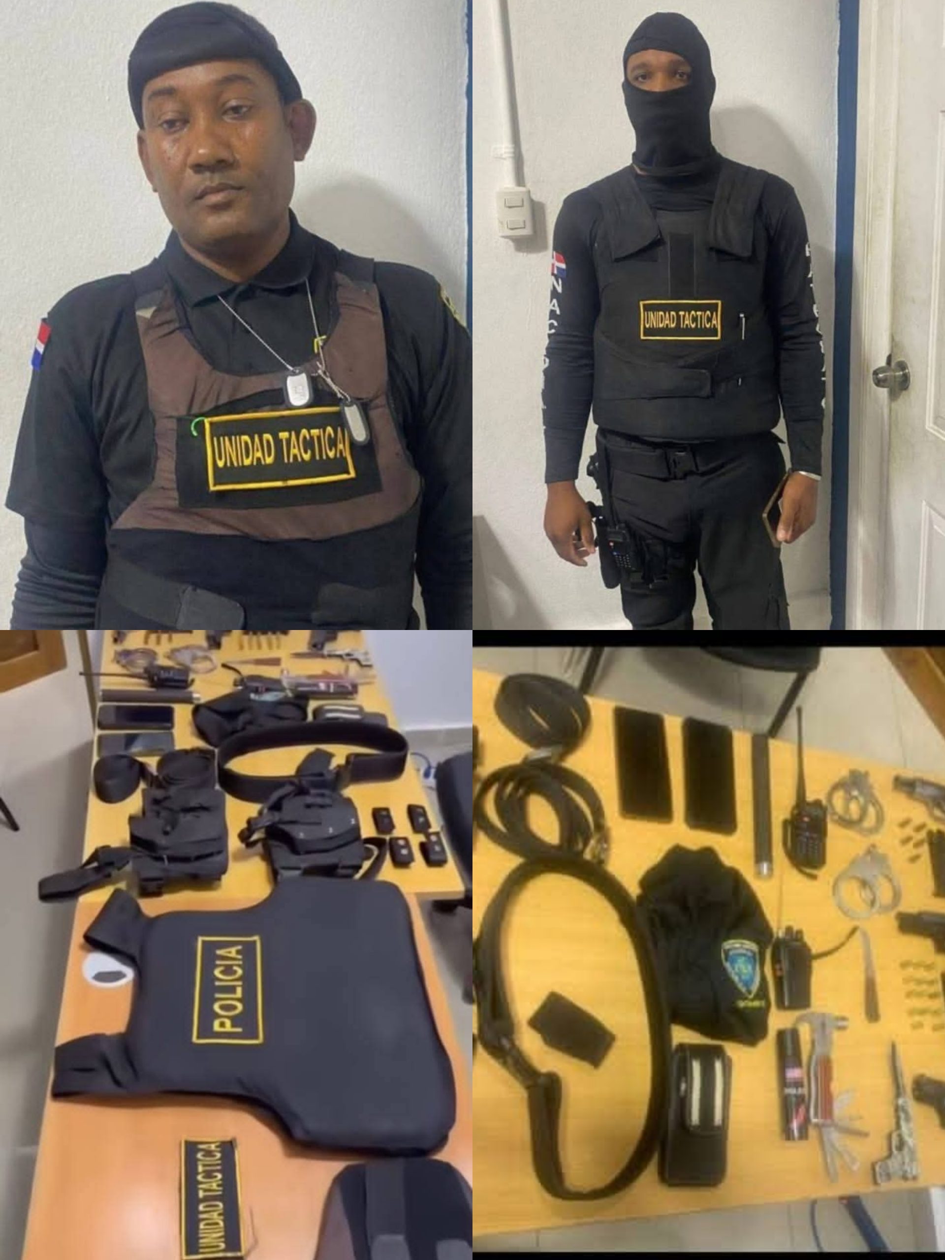 Los detenidos fueron identificados como Julio César Gómez de la Cruz de 41 años, y Gustavo Ariel Daris Ventura de 31. Ambos llevaban puesta una indumentaria policial completa, incluyendo pasamontañas, chalecos antibalas con logos del Escuadrón Especial, pistolas, grilletes y radios de comunicación.