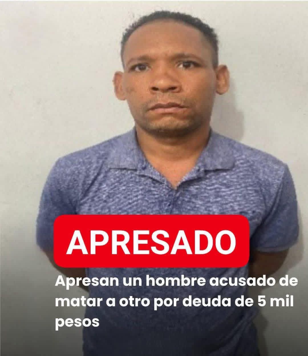 Un hombre acusado de quitarle la vida a un joven por una deuda de 5 mil pesos fue apresado por la Policía Nacional en Monte Plata. Se trata de Liriano Castro Glenddrys José, de 40 años, señalado de propinar la estocada que le causó la muerte a Charier Pérez Mueses, de 18 años.