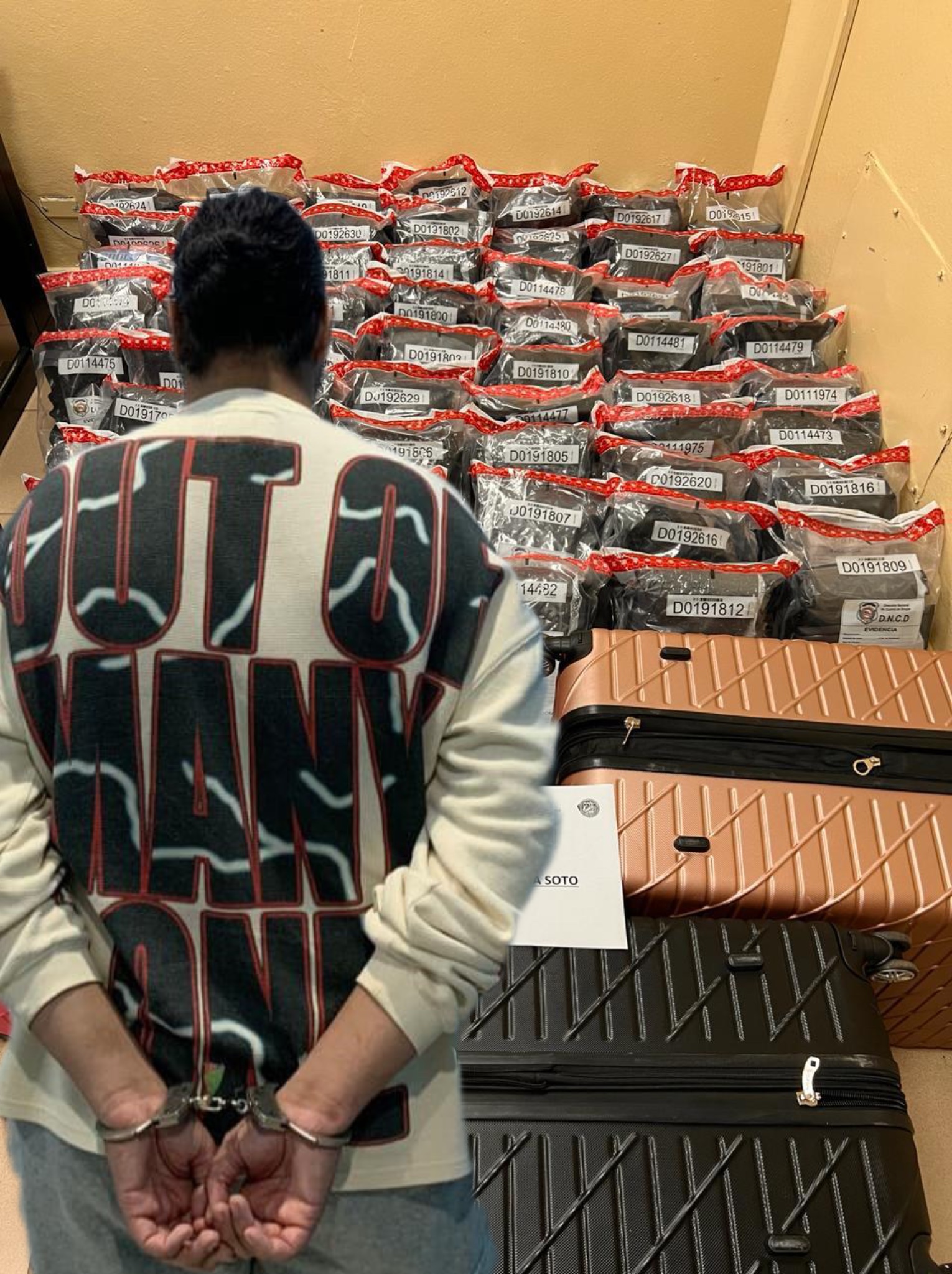“Rivera Soto era perseguido desde el pasado mes de abril de este 2025, por la incautación de tres maletas, en el aeropuerto Cibao, procedentes de Nueva Jersey, Estados Unidos, en cuyo interior confiscaron un total de 118 paquetes de marihuana, con un peso preliminar de 134 libras”.